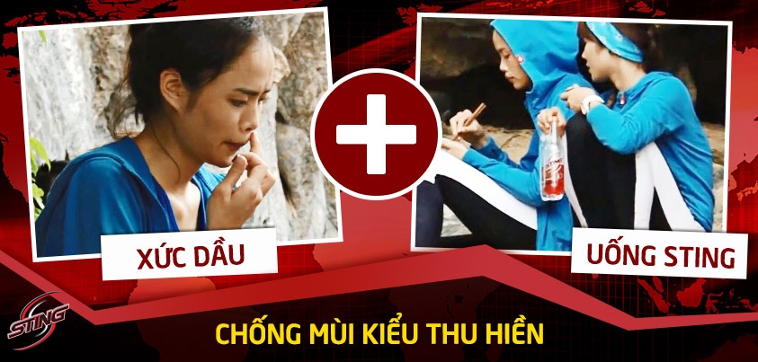 | Thu Hiền tìm đủ mọi cách để chống mùi trong thử thách ăn cá. |