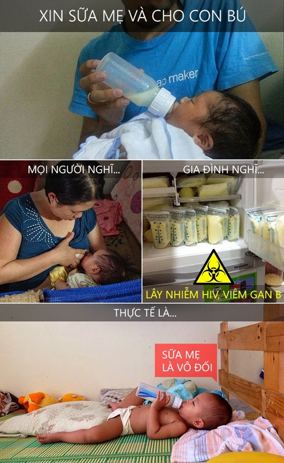 Ngày 22/5, cộng đồng mạng lan tỏa ảnh chế về sự thật người đàn ông đã chăm con bằng sữa mẹ. Anh là một người bố đơn thân đã một mình nuôi con sau khi vợ mất. Để con được bú sữa mẹ đầy đủ, anh Tuấn đã lên Facebook, diễn đàn, hỏi khắp nơi để xin sữa từ các bà mẹ. Đối với anh sữa mẹ vẫn là "vô đối".