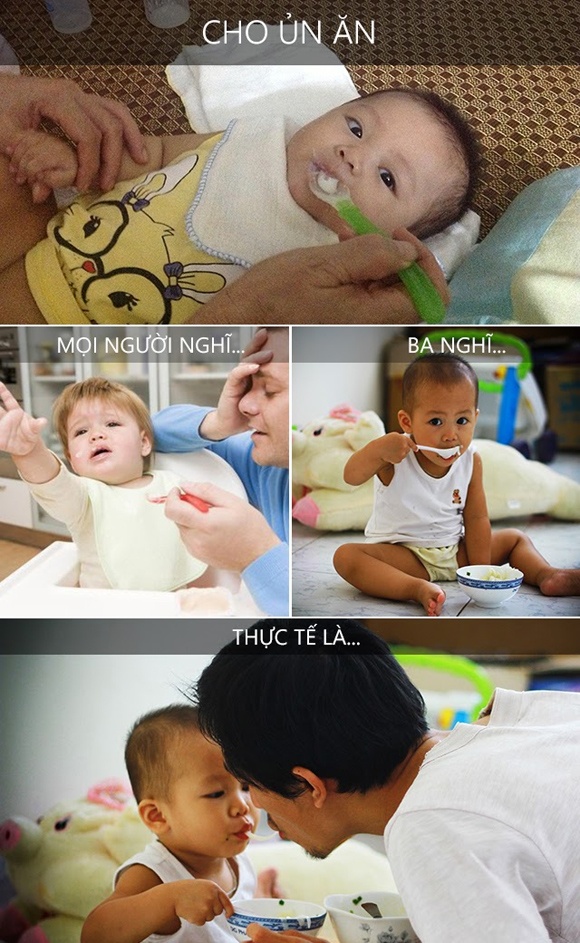 | Hình ảnh người bố tỉ mỉ cho con tập ăn. Anh chia sẻ rằng, dù chăm chút và cẩn thận cho con từng li nhưng với một ông bố tập sự thì đôi lúc vẫn mắc những sai lầm cơ bản, như cho con ăn sai tư thế. |