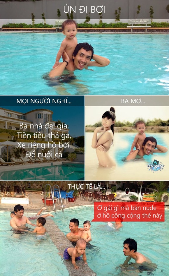| Khi cộng đồng mạng chế ảnh về cuộc sống của anh, nhiều người cho rằng Trình Tuấn có nhà lầu, xe hơi, tài khoản mấy trăm tỉ... Tuy nhiên, sự thật những bức ảnh được ghi lại quá trình anh cho bé Ủn trải nghiệm những điều thú vị - hồ bơi là một ví dụ. |