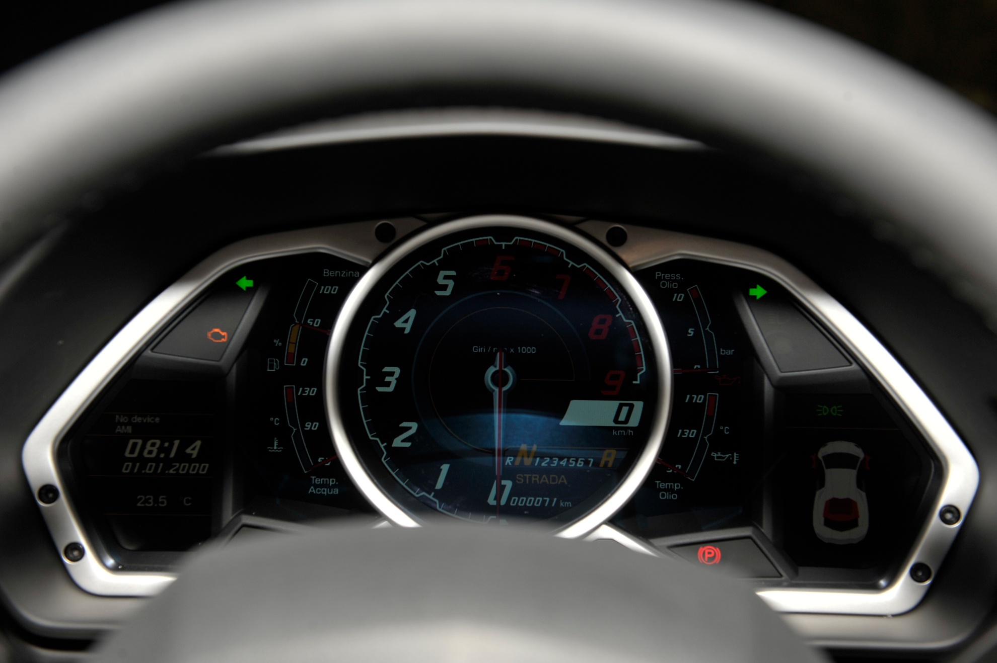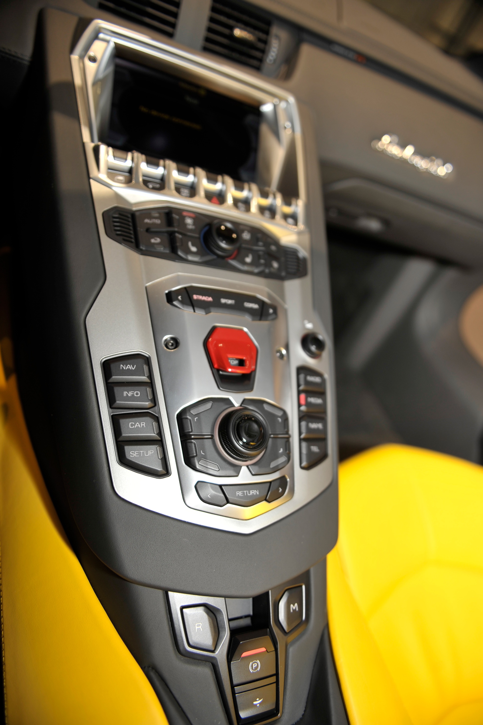 | "Siêu bò" vẫn duy trì cửa mở kiểu cắt kéo của Lamborghini. Khoảng cách gầm xe so với mặt đất đúng bằng chiều dài của một chiếc iPhone 4 là 115,2 mm. |