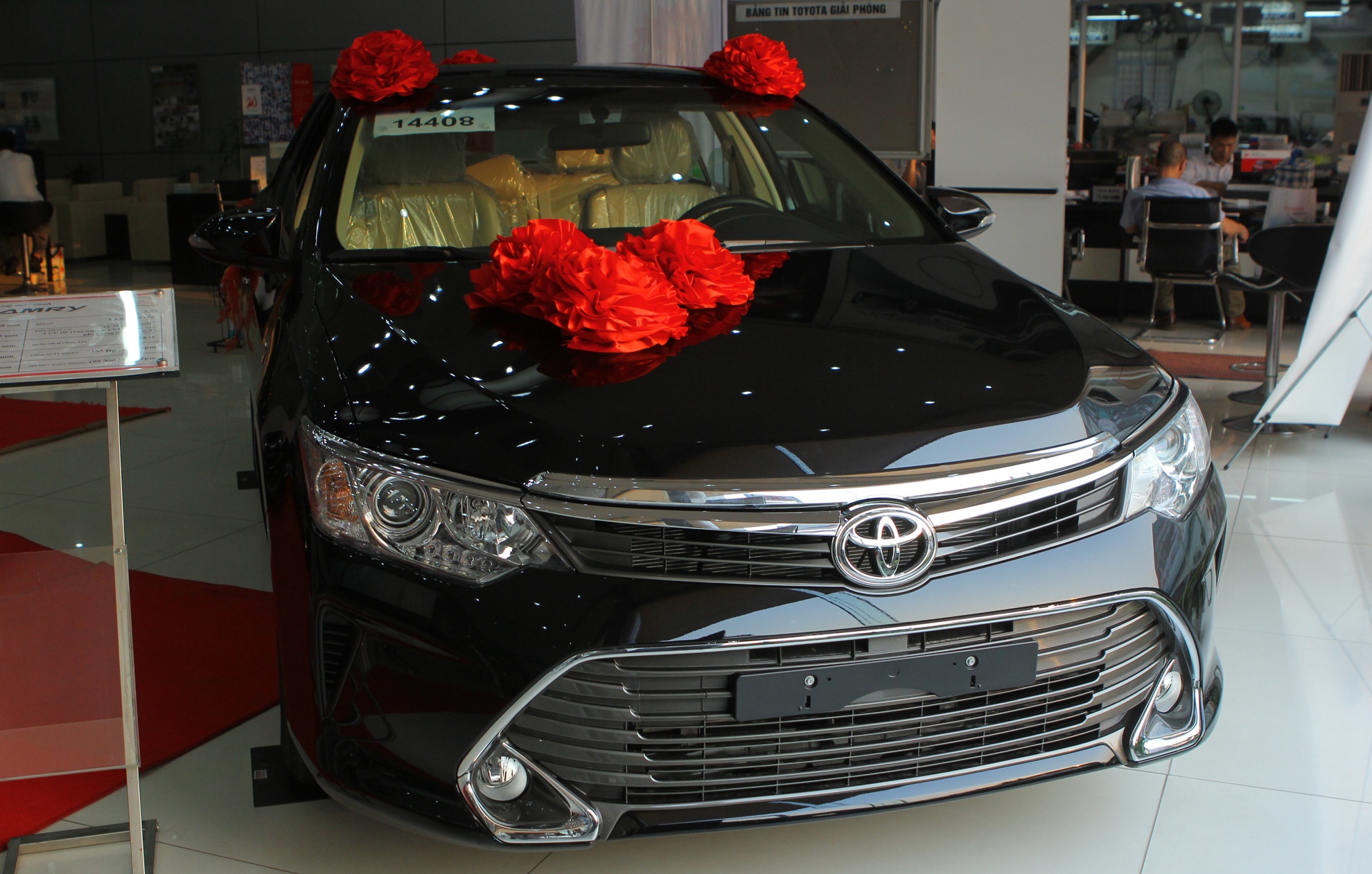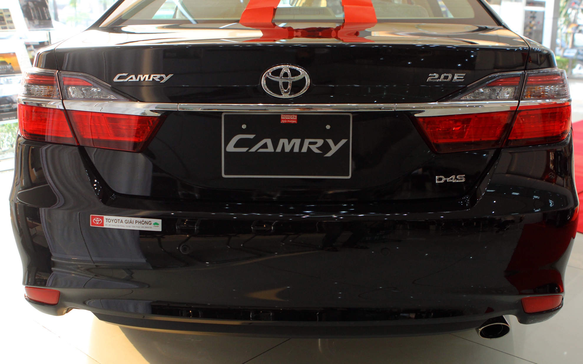 Mẫu xe Camry 2015 màu đen cùng hai phiên bản 2.0E và 2.5Q có mặt tại hệ thống đại lý chính hãng trên toàn quốc từ chiều tối 19/4. Theo một nhân viên kinh doanh của Toyota Giải Phóng, mức giá sẽ được công bố ngày 21/4, tại một sự kiện riêng ở Hà Nội.