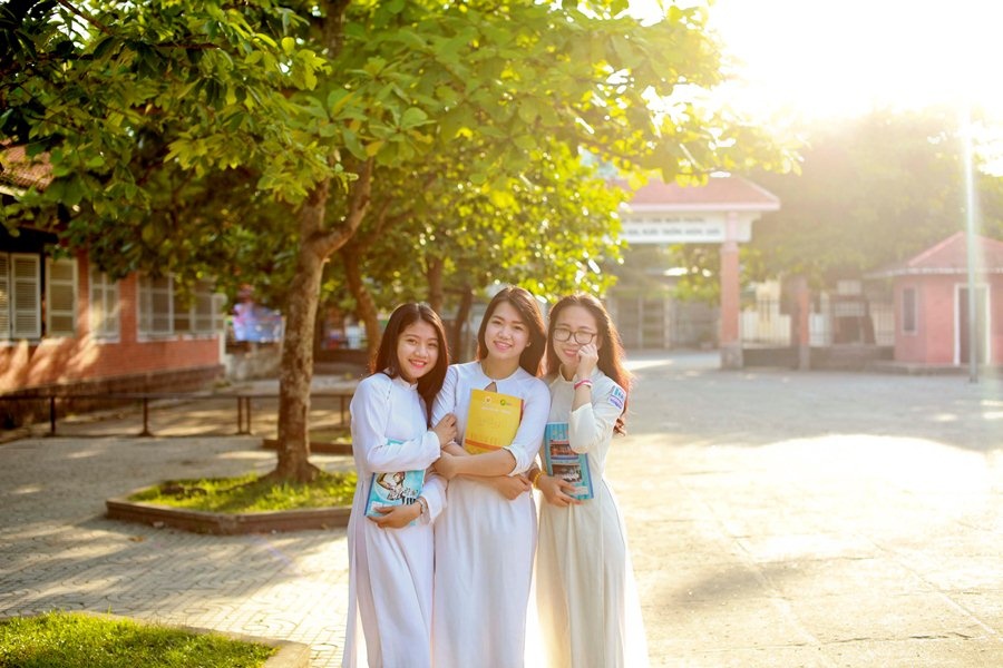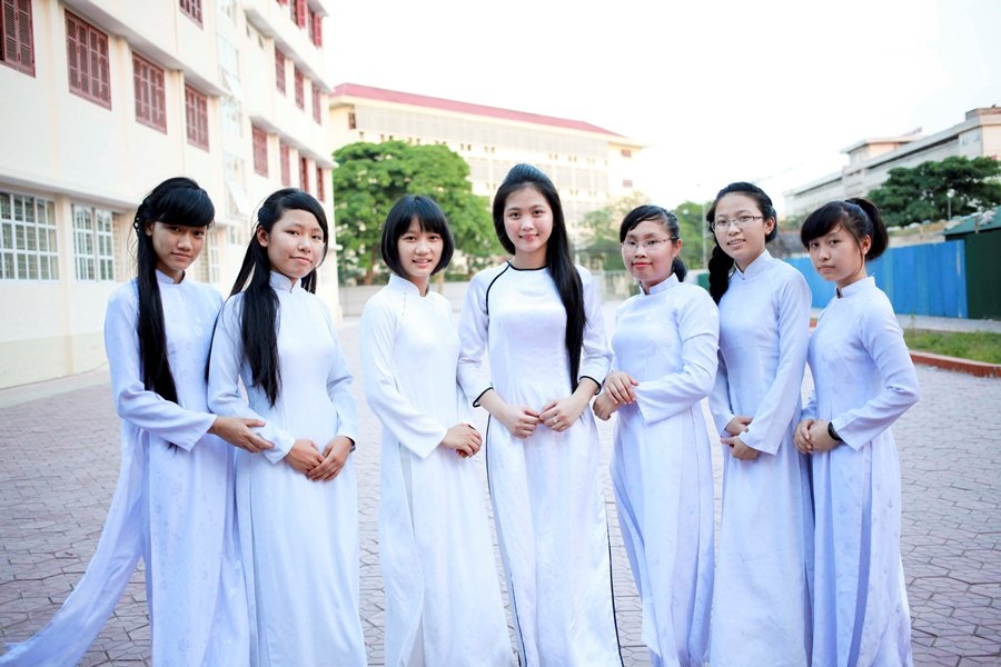 | Nữ sinh trường THPT Hermann Gmeiner xinh tươi trong tà áo dài trắng. |
