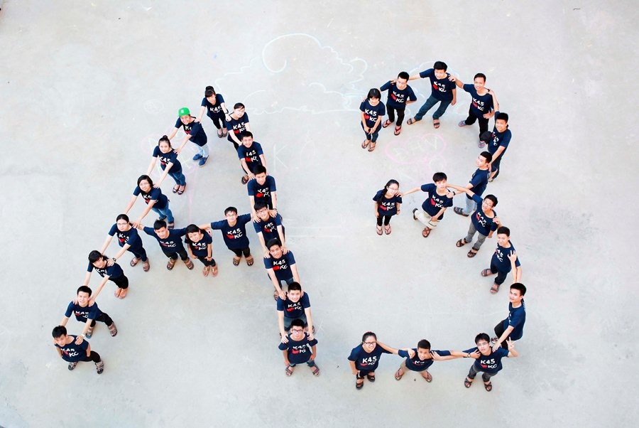 | Học sinh lớp 12 A3 xếp hình tên của lớp. |