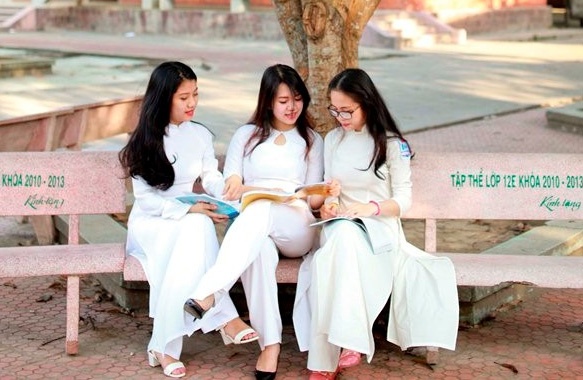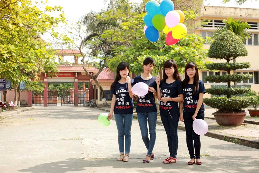 | Nữ sinh THPT Huỳnh Thúc Kháng mặc áo đồng phục riêng. |