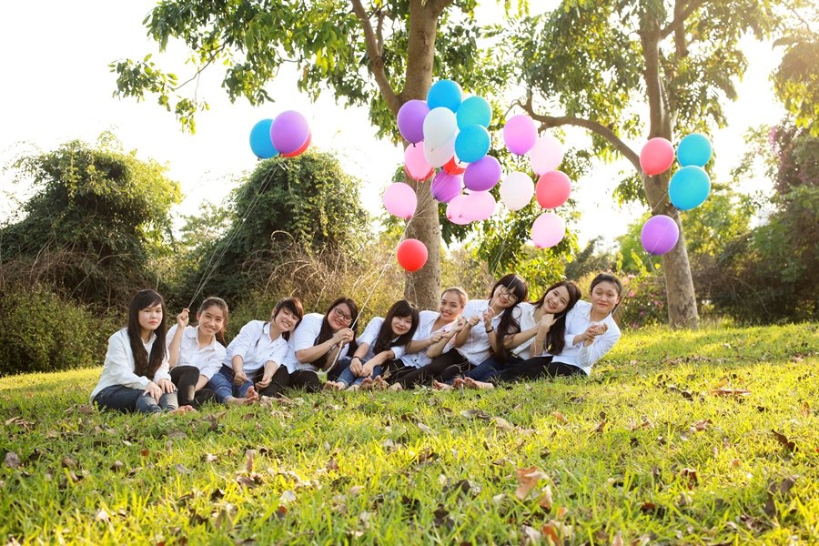 | Chụp ảnh xì-tin cùng những chùm bóng rực rỡ sắc màu. |