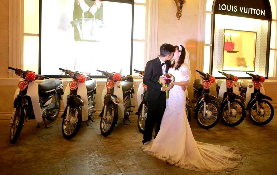 Ảnh cưới bên dàn xe Dream của cặp đôi 9X Hòa Bình