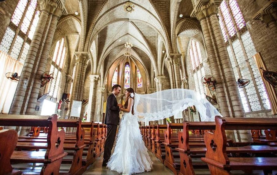 | Không chỉ trên biển, cả hai còn ghi lại khoảnh khắc lãng mạn ở nhà thờ. |