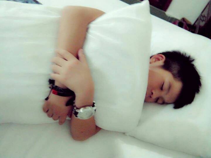 Hình ảnh dễ thương của Quang Anh khi ngon giấc cũng được bạn bè chụp lại để cậu nhóc chia sẻ trên trang cá nhân.