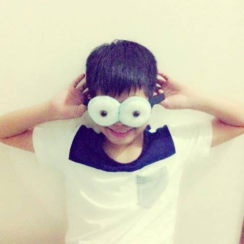 Khoảnh khắc tinh nghịch khi đeo đôi mắt của một chú Minion trong bộ phim hoạt hình Kẻ trộm mặt trăng.