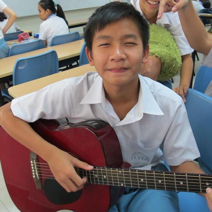 | Chàng trai chia sẻ: "Bố là người chơi guitar cừ khôi nên mình mong ước sau này cũng chơi giỏi như bố bằng cách tự mày mò và luyện tập". |