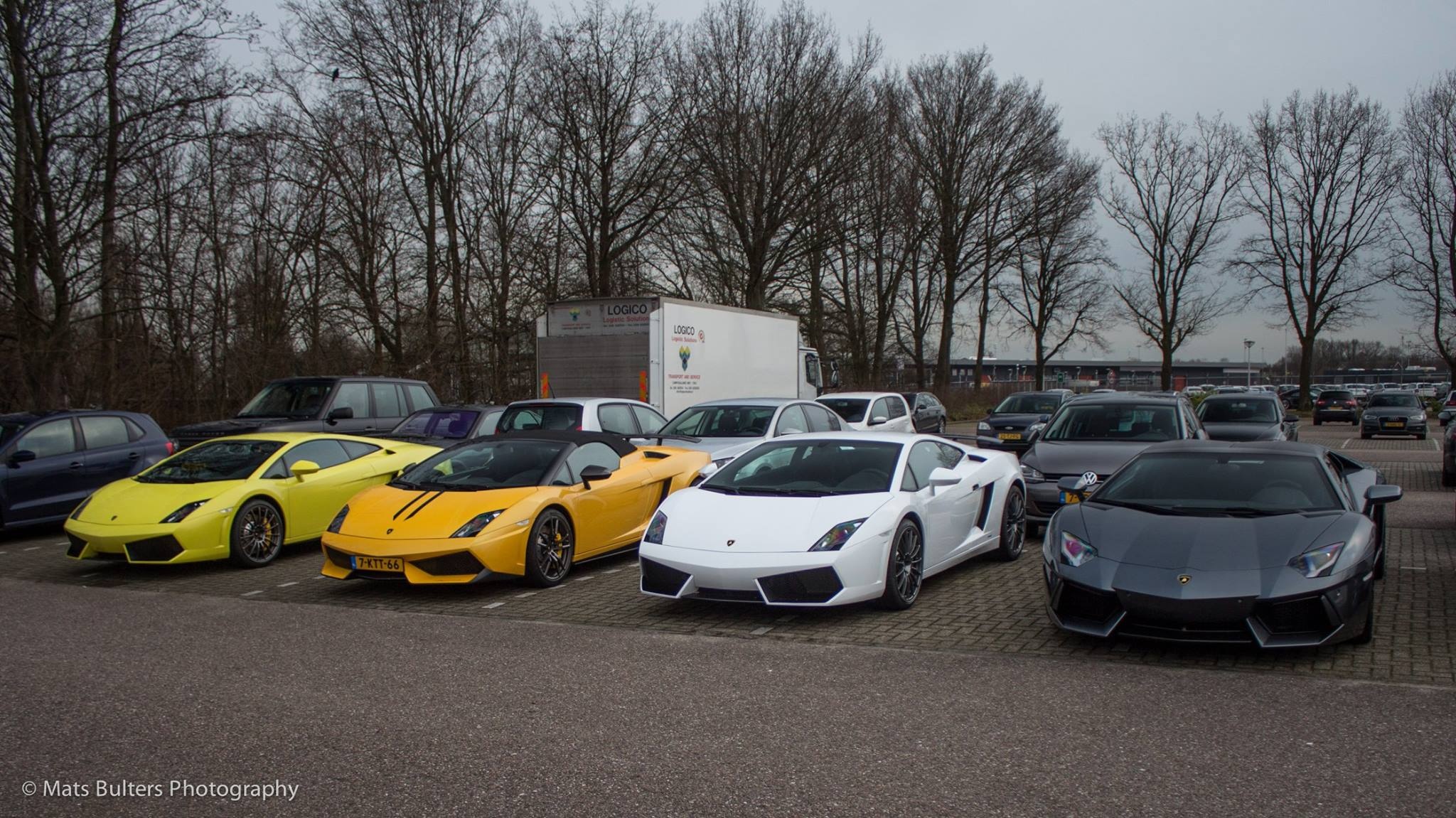 | Trong khi đó, một bãi đỗ xe khác lại xuất hiện loạt 4 siêu xe đình đám của của Lamborghini. Ảnh: Mats Bulters. |