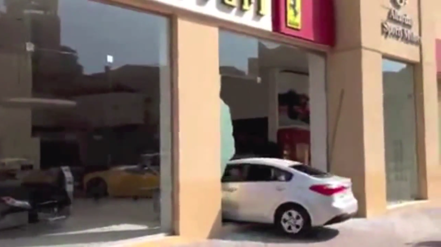 | Tài xế điều khiển chiếc xe mang hiệu Kia này đã đâm thẳng vào một showroom Ferrari do say rượu. Ảnh: Thesupercarkids. |