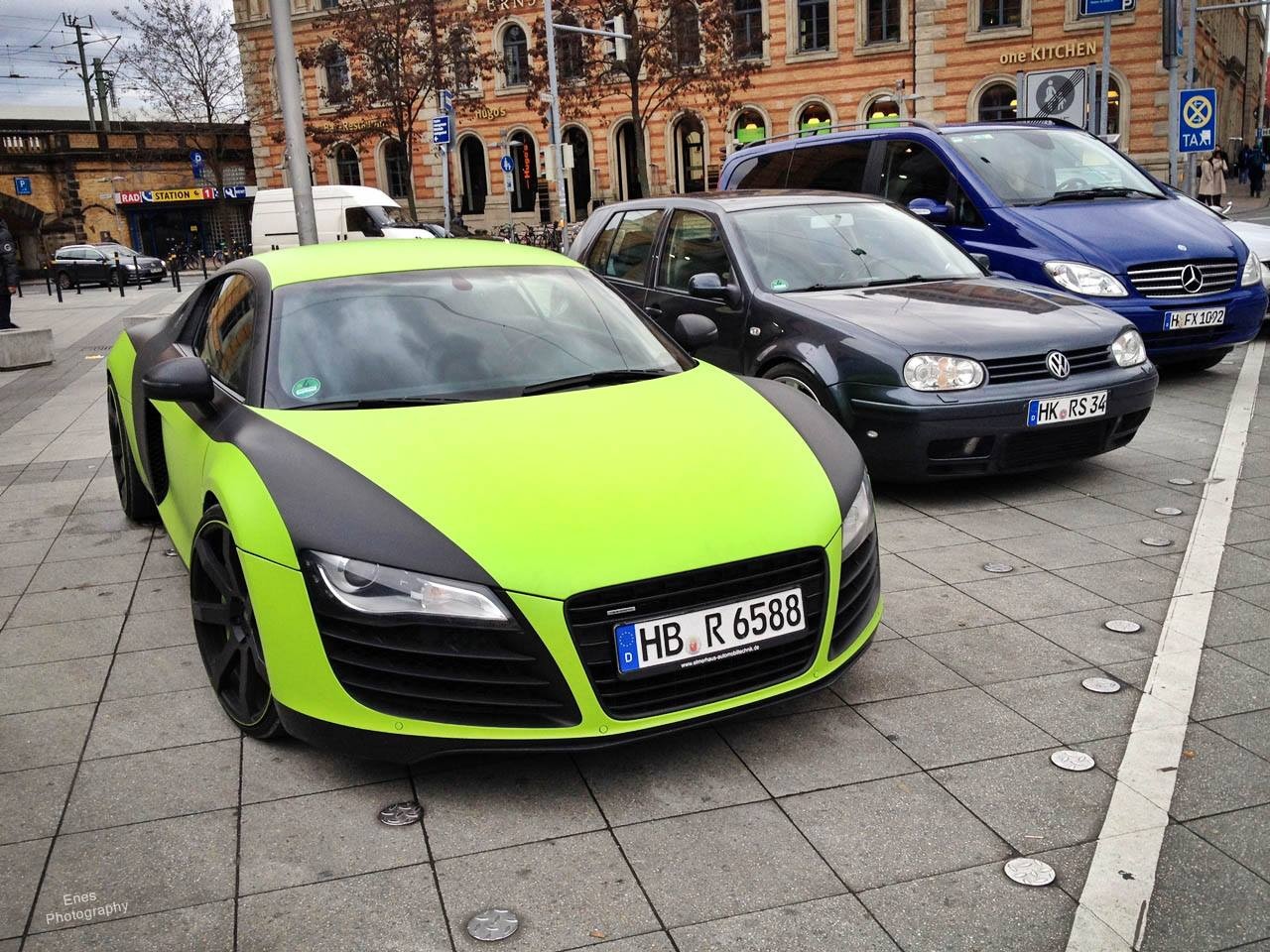| Audi R8 phối màu sơn độc đáo xanh lá-đen. Ảnh: Enes. |