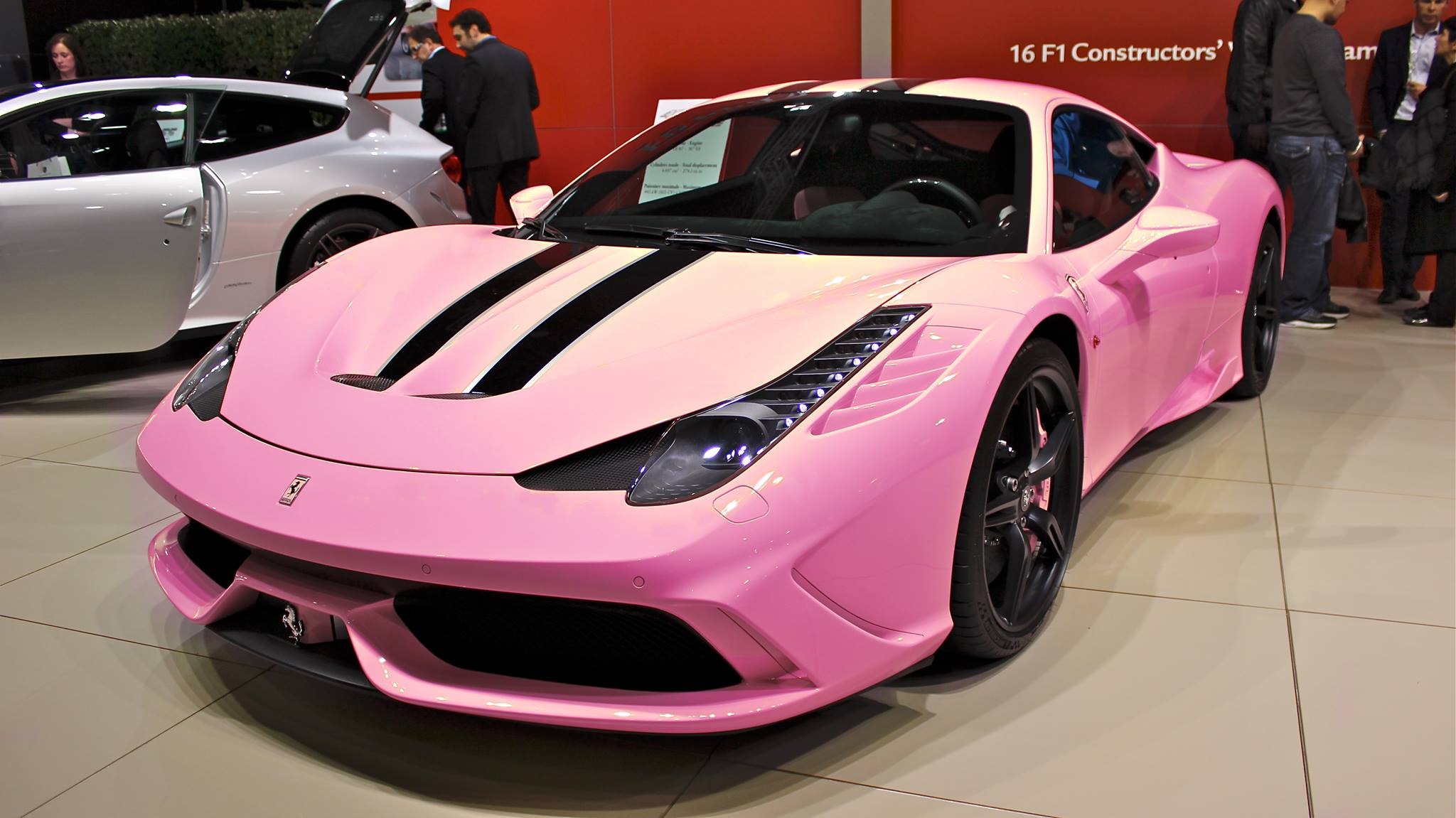 | Bản dựng siêu xe Ferrari 458 Speciale màu hồng nữ tính. Ảnh: Yul Jones. |