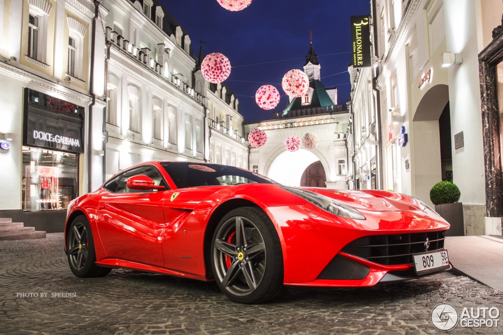 | Ferrari F12 Berlinetta cũng đẹp không kém phần dưới ánh đèn đêm. Ảnh: Autogespot. |