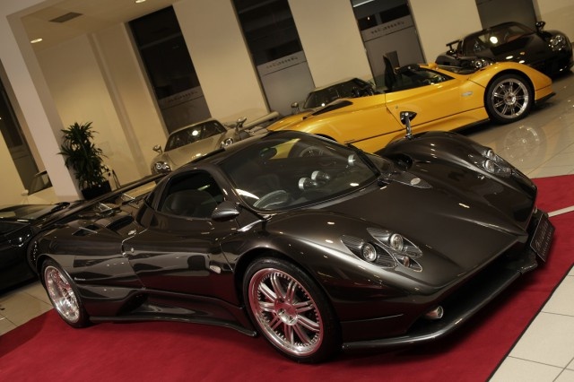 | Một đại lý ở Đức trưng bày 4 chiếc Pagini Zonda bao gồm Zonda F coupe, Zonda F coupe màu đen, Zonda S coupe bạc và as Zonda S Roadster vàng. |