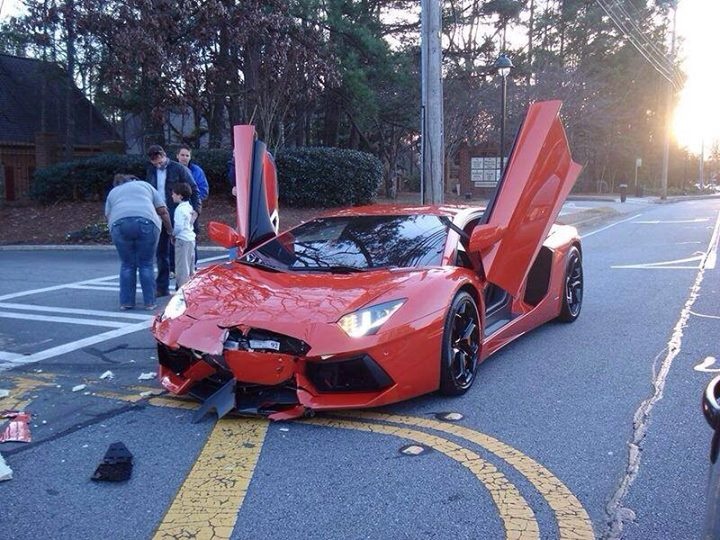 | Một chiếc Lamborghini Aventador gặp nạn. |