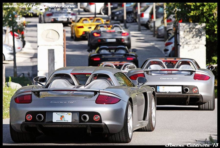 | 7 chiếc Porsche Carrera GT nối đuôi nhau. |