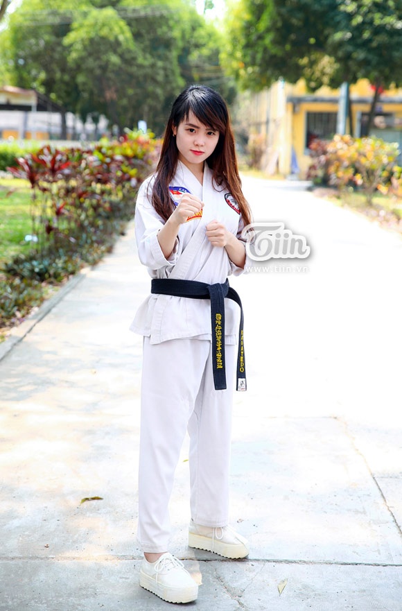Ngân chia sẻ: “Con gái học võ có rất nhiều lợi ích. Thứ nhất, võ thuật giúp các bạn nữ có khả năng tự vệ và đánh trả kẻ xấu khi cần thiết với điều kiện các bạn phải tập luyện kiên trì trong thời gian dài.