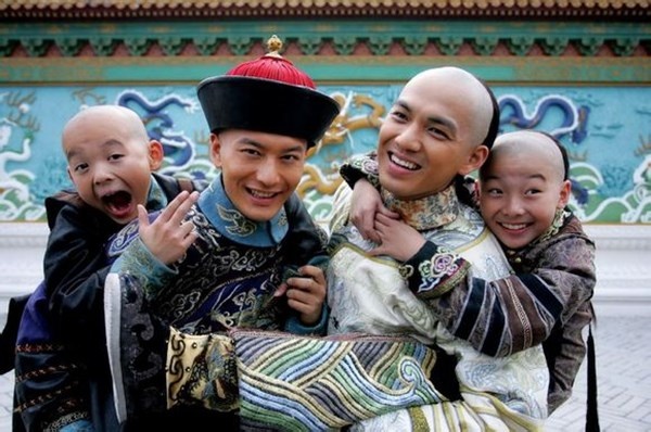 | Vi Tiểu Bảo và Khang Hy phiên bản nhí và khi trưởng thành vui đùa bên nhau. |