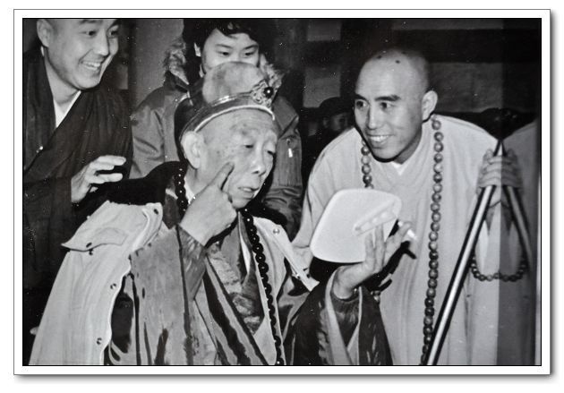 Trình Chi (Kim Trì trưởng lão, mất 1995) vừa hút thuốc vừa trang điểm, bên cạnh Lý Vĩnh Quý (Quảng Trí hòa thượng).