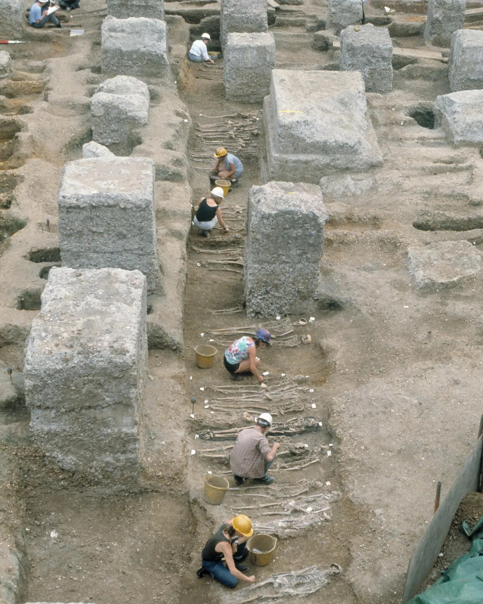 | Các nhà nghiên cứu đã trích xuất DNA từ hài cốt của những người được chôn cất trong các hố dịch hạch ở East Smithfield, được sử dụng để chôn cất hàng loạt vào năm 1348 và 1349. Ảnh: Bảo tàng Khảo cổ học London. |