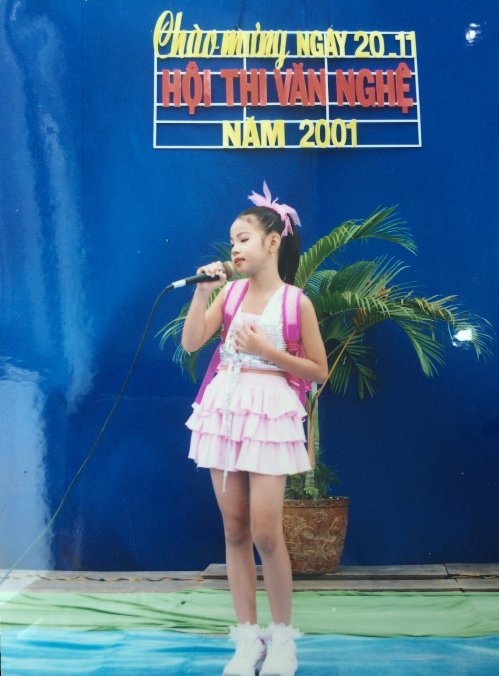 Từ ngày còn đi học, cô đã thể hiện rõ niềm đam mê ca hát. Cuối tháng 12 này, Vũ Cát Tường cũng sẽ đánh dấu sự thay đổi về hình ảnh và phong cách bằng một album mới. Trong hình, nữ ca sĩ lúc 7 tuổi.