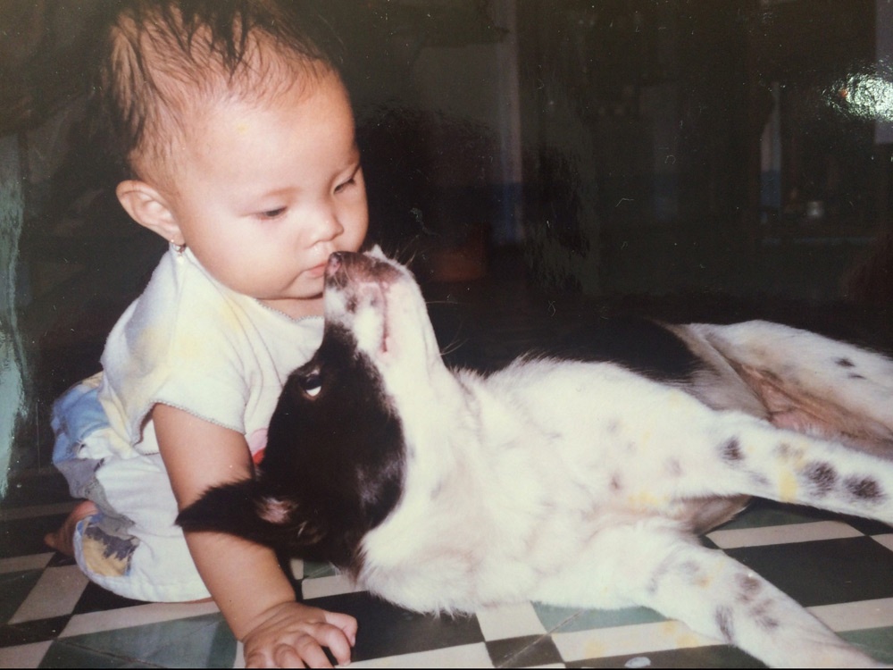 | Hình ảnh nữ ca sĩ chơi cùng chú cún trong nhà lúc gần tròn một tuổi. "Mẹ kể, ngày nhỏ tôi nghịch ngợm và bạo dạn chứ không nhút nhát như bây giờ" - cô nói. |