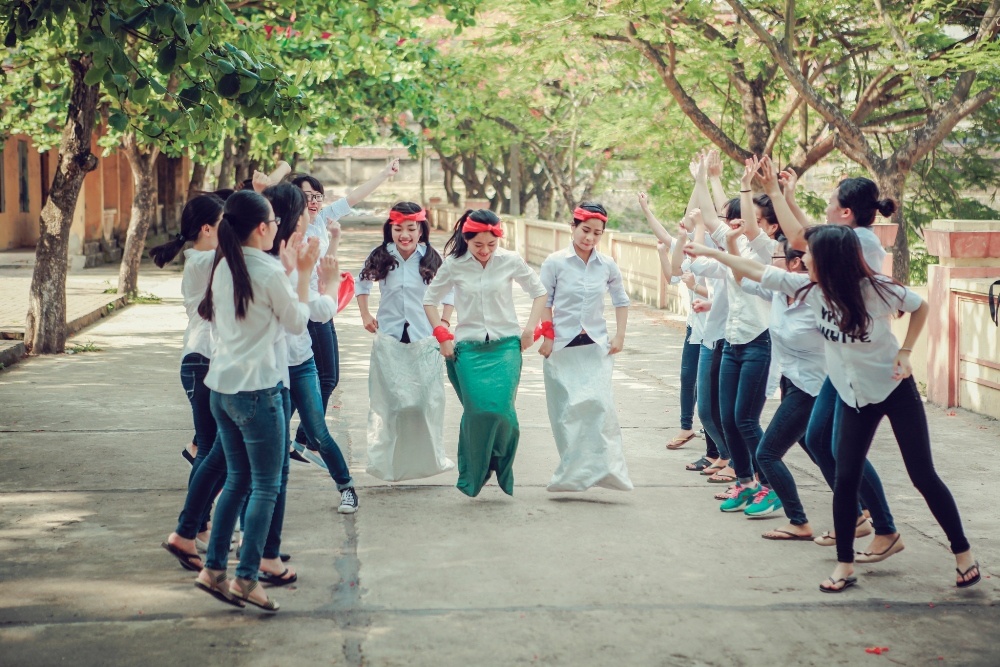 | Nhảy bao bố là một trong những trò chơi thân thuộc, gần gũi với các bạn trẻ. |