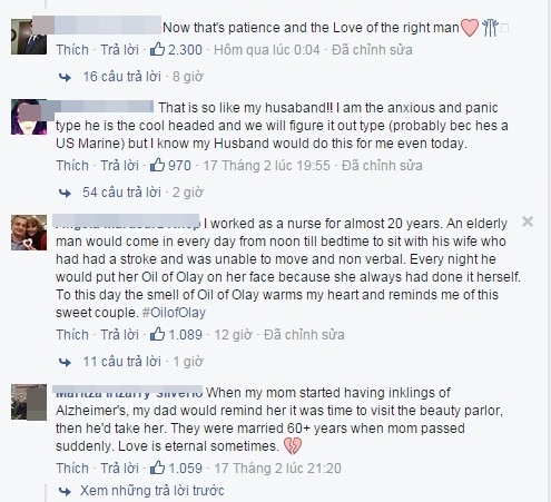 Đó chỉ là hành động nhỏ, nhưng lại nói lên tình cảm vĩ đại ông dành cho bà. Một điều đơn giản không phải ai cũng hiểu: Chúng ta rồi sẽ già đi, song tình yêu vẫn mãi tồn tại”.