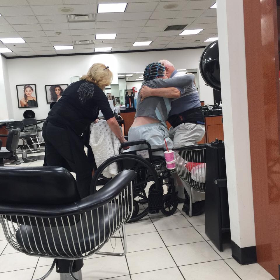 | Nickname Libby Gagle đăng tải bức ảnh khác về người chồng đưa vợ đi cắt tóc, sau khi biết câu chuyện trên. Ảnh: FB Libby Gagle. |