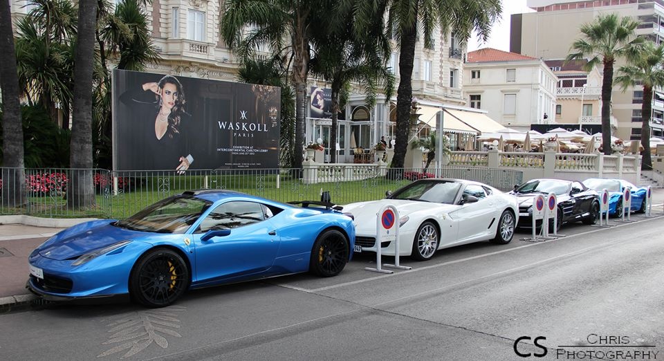 | Dàn siêu xe trước cổng khách sạn InterContinental Carlton Cannes, Pháp. |