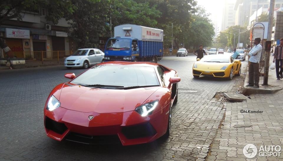 | Bộ đôi siêu xe Lamborghini Aventador và Gallardo ở Ấn Độ. |