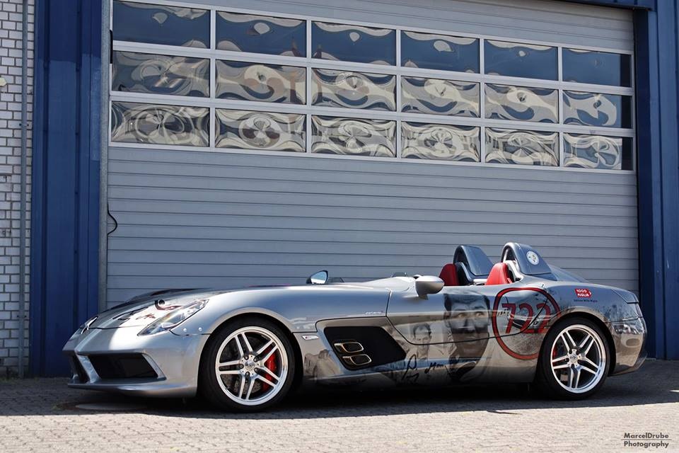| Một chiếc Mercedes SLR in hình tay đua huyền thoại Stirling Moss ở Hannover, Đức. |