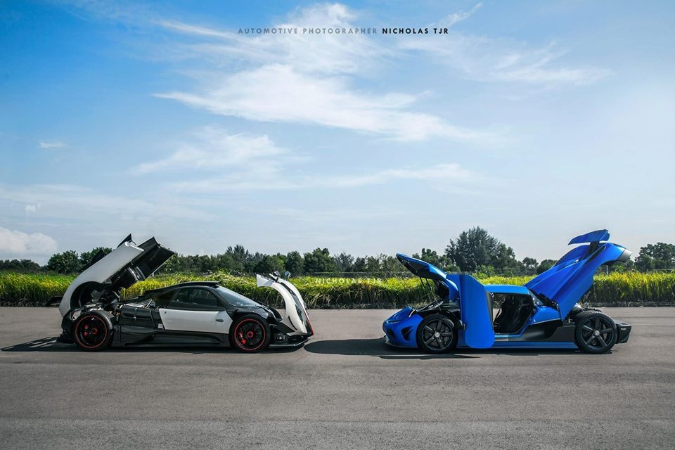 | Siêu xe Pagani Zonda Cinque và Koenigsegg Agera đọ dáng ở Singapore. |