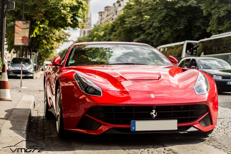 | Ferrari F12 Berlinetta màu đỏ cũng có mặt ở Paris, Pháp. |