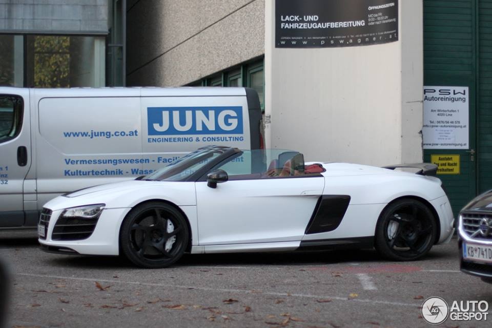 Audi R8 V10 Spyder với gói độ Mansory, thêm cánh gió, la-zăng mới, đặc biệt động cơ V10 5,2 lít được tăng công suất lên 552 mã lực và mô-men xoắn cực đại 550 Nm.