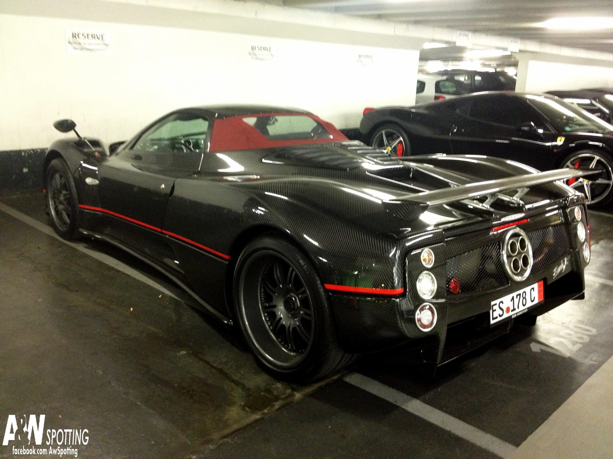 | "Thần gió" Pagani Huayra trong bộ cánh carbon bên cạnh siêu xe Ferrari 458 Italia trong một nhà để xe. |