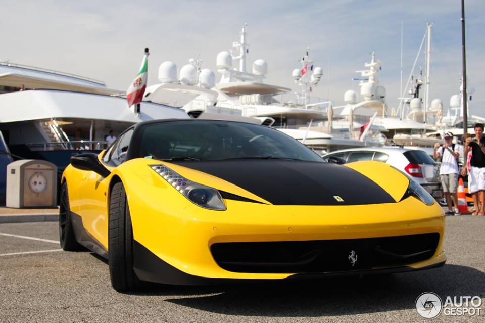 | Ferrari 458 Italia màu sơn vàng-đen đặc biệt ở Cannes, Pháp. |