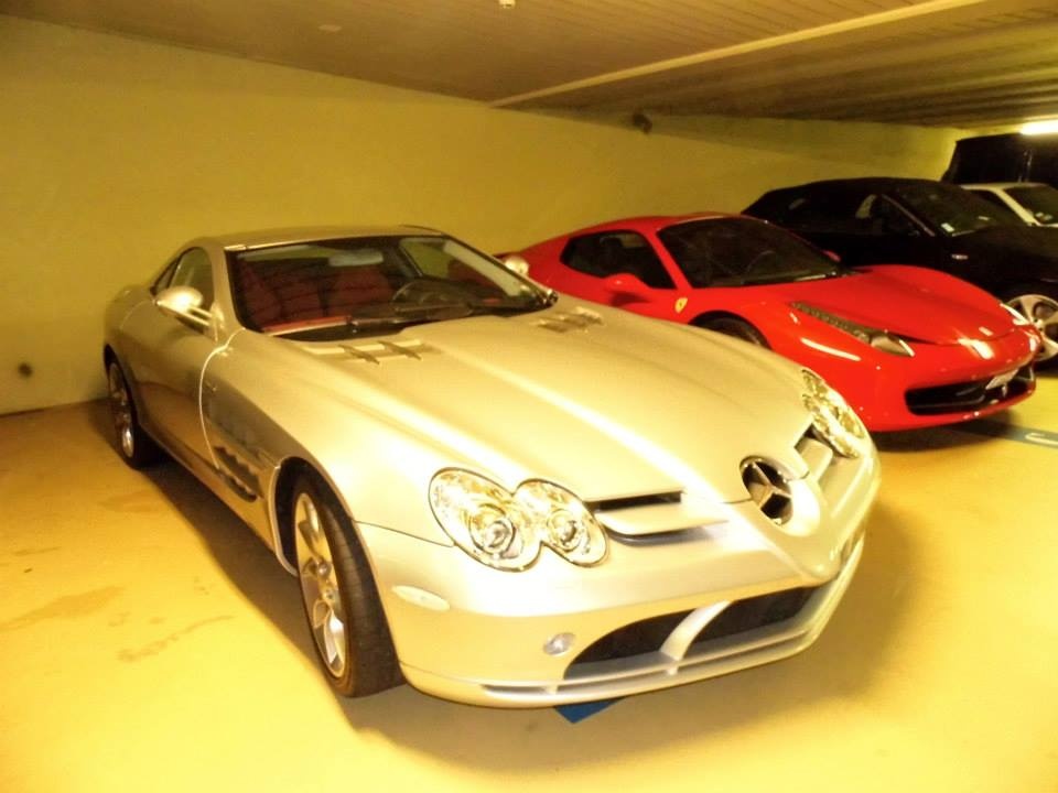 | Mercedes SLR 722 và Ferrari 458 Italia trong một hầm để xe ở Monaco, Pháp. |