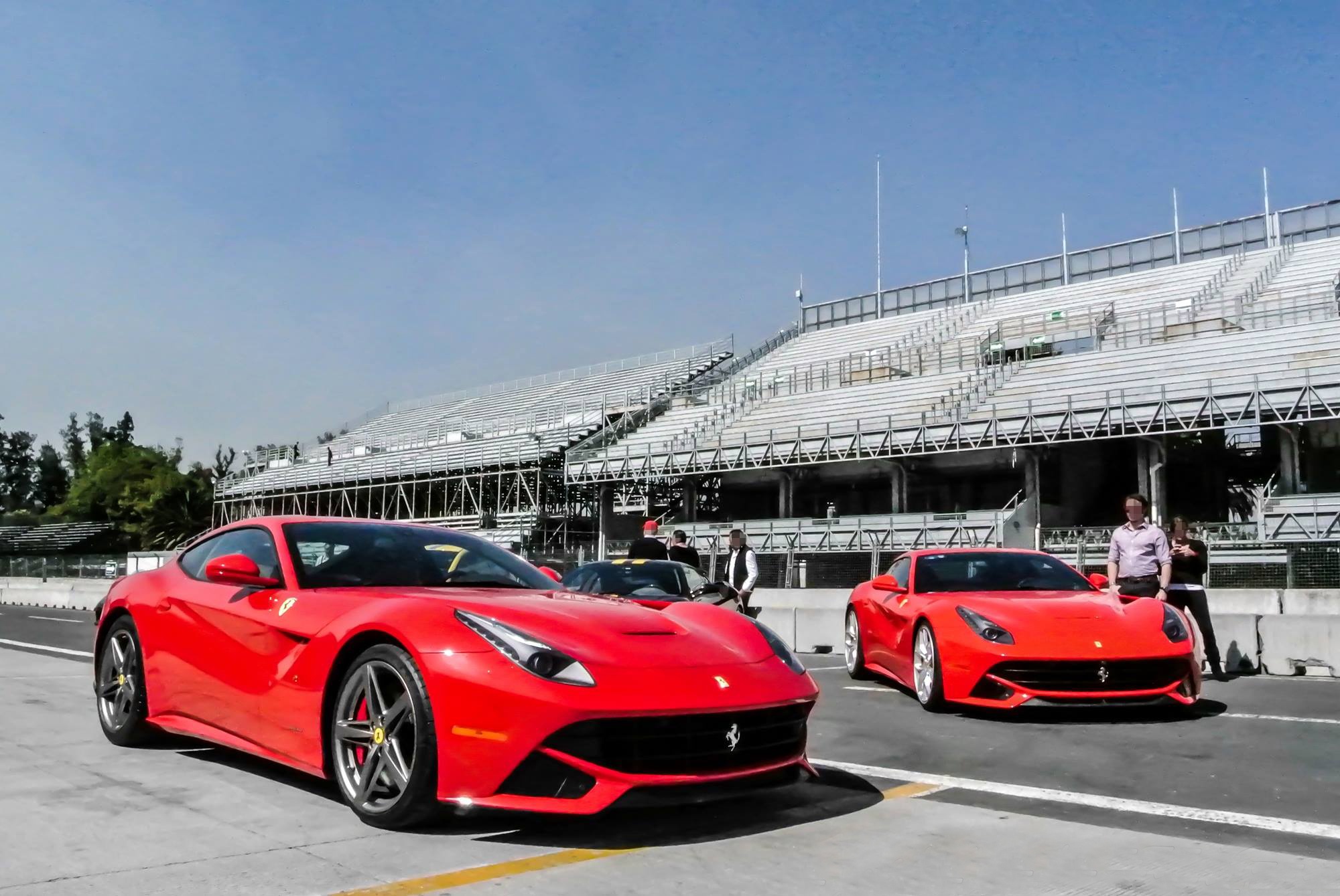 | Cặp siêu xe Ferrari F12 Berlinetta trên một đường đua tại Mexico, trong đó có một phiên bản đã được độ lại bởi nhóm độ Novitec Rosso. |