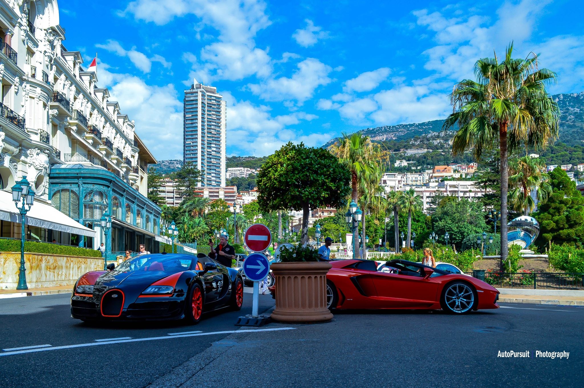 | Bộ đôi siêu xe mui trần hàng khủng Bugatti Veyron Grand Sport Vitesse và Lamborghini Aventador Roadster. |