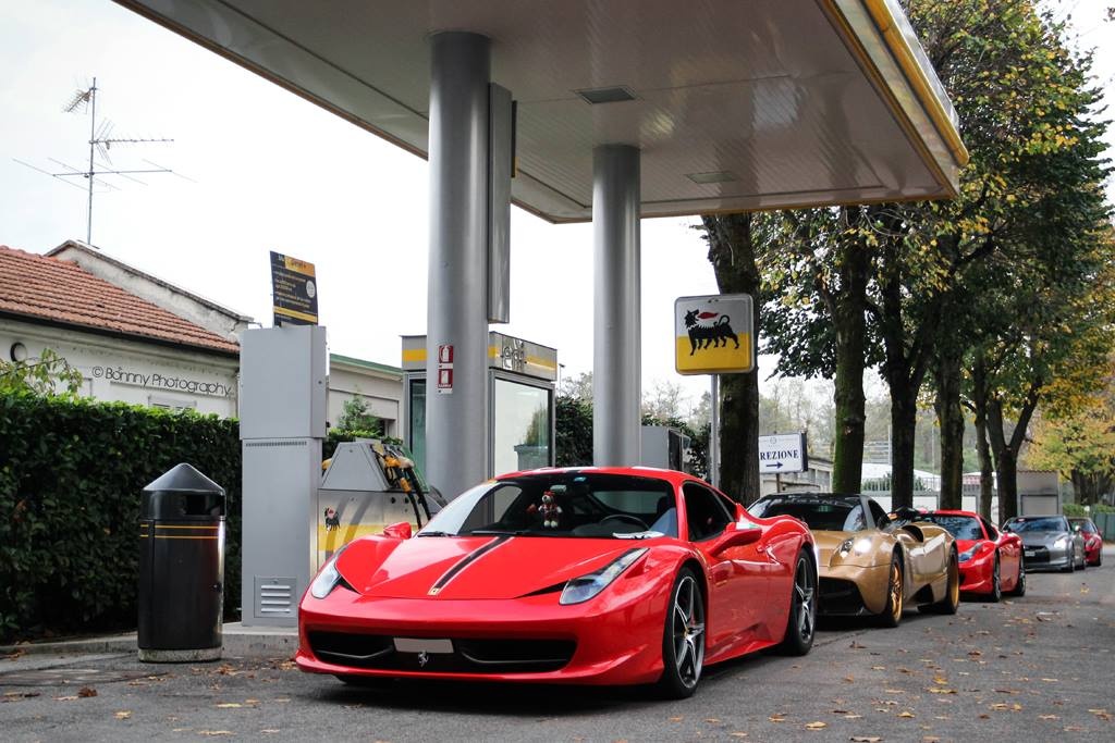| Những khách hàng đáng mơ ước cho bất kỳ cây xăng nào trên thế gới. Có thể nhận thấy những cái tên như siêu xe Ferrari 458 Italia, Pagani Huayra màu vàng độc, Nissan GT-R. |
