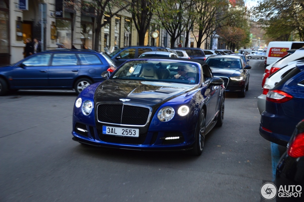 | Mẫu xe siêu sang Bentley Continental GTC Speed Mansory Sanguis 2012 được ghi lại trên đường phố Prague, Séc. Sản phẩm độ của Mansory sở hữu sức mạnh 650 mã lực, mô-men xoắn cực đại 800 Nm tại 6.100 vòng/phút, có khả năng tăng tốc từ 0-100 km/h trong 4 giây và đạt vận tốc 348 km/h. |
