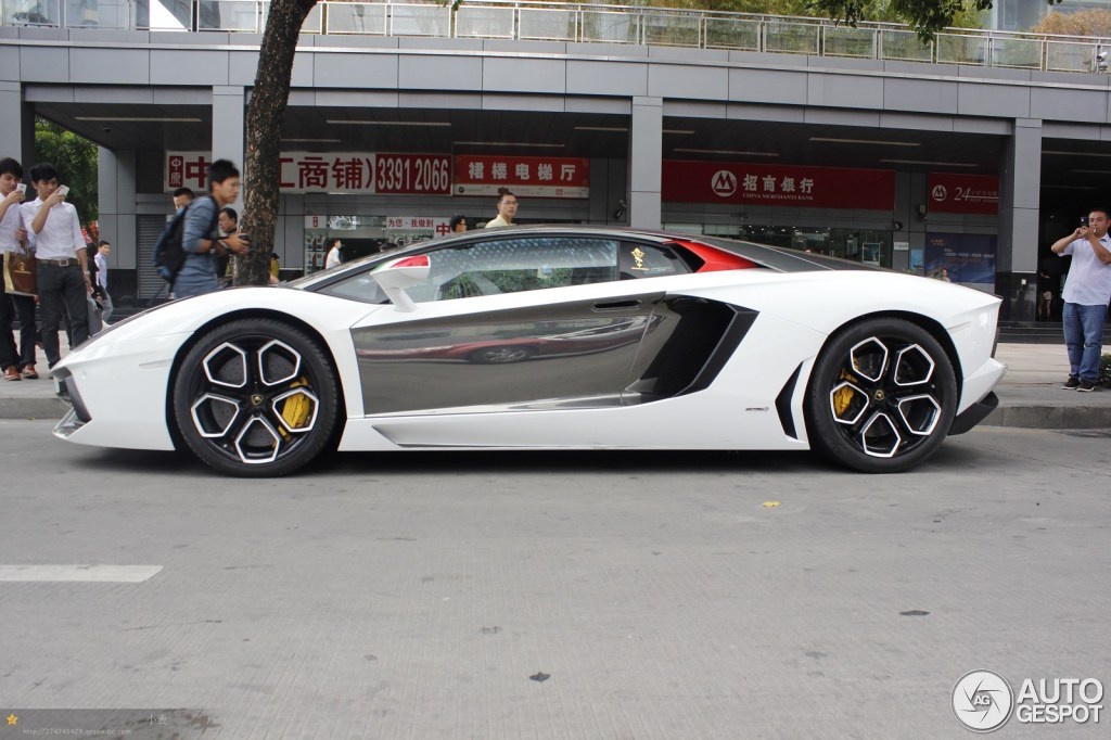 | Siêu xe Lamborghini Aventador với một số chi tiết được chủ nhân thay đổi để tạo nên sự khác biệt. Có thể nhận thấy, trên thân xe xuất hiện nhiều vị trí được mạ chrome bóng loáng và phối màu đen trắng. Ảnh: Autogespot. |