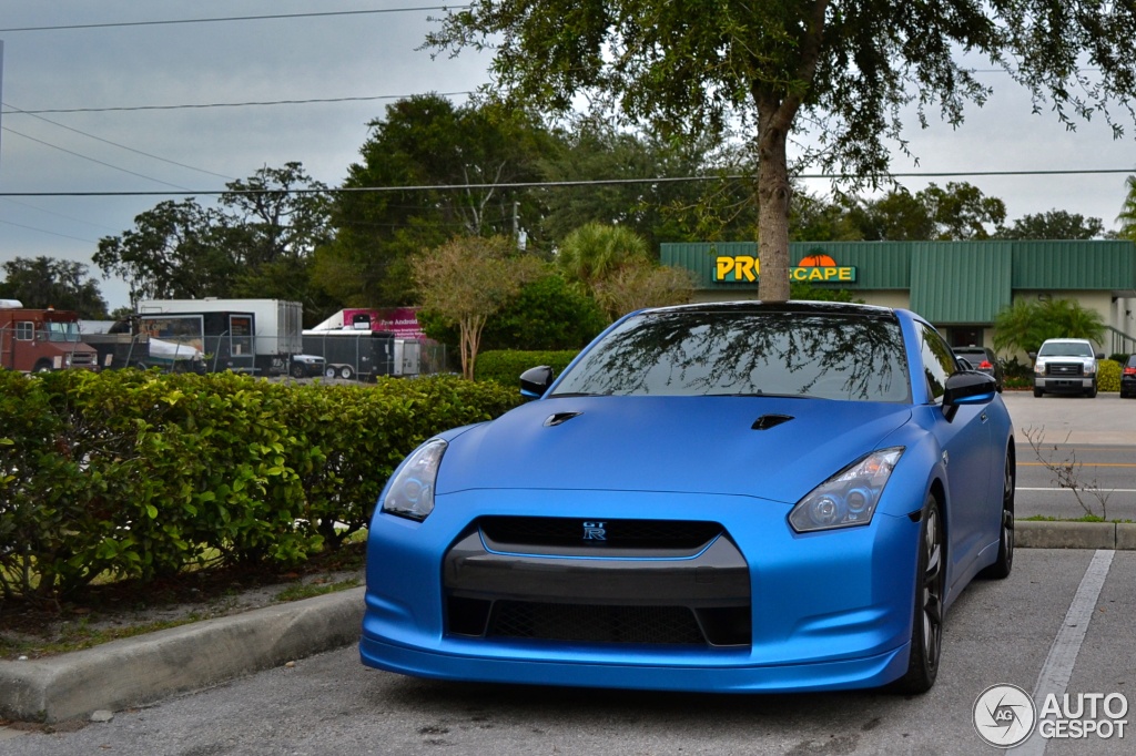 | Siêu xe Nhật Bản Nissan GT-R với thân xe được sơn màu xanh nhám. Siêu xe này sở hữu sức mạnh 485 mã lực và mô-men xoắn cực đại 588 Nm, có thể đạt tốc độ tối đa 310 km/h. Ảnh: Autogespot. |