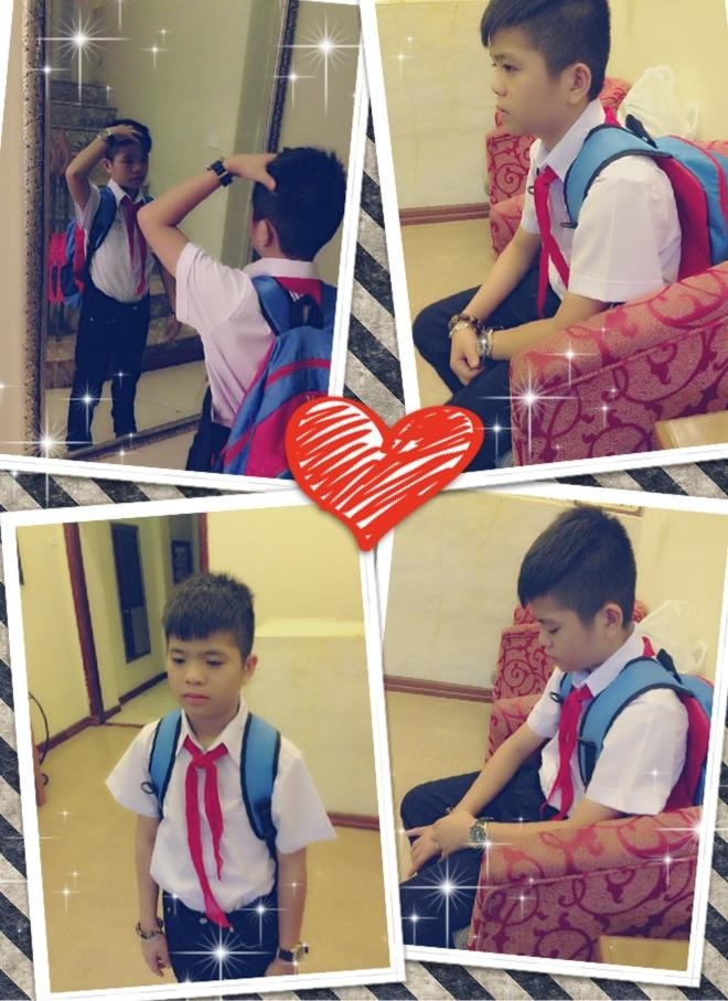 Trở thành quán quân đầu tiên của cuộc thi âm nhạc dành cho thiếu nhi này, Quang Anh khá bận rộn với các show diễn ở Hà Nôi và cả Thanh Hóa. Tuy nhiên, việc quan trọng nhất đối với cậu nhóc trong thời điểm này vẫn là đi học. Hiện tại, Quang Anh đang học lớp 7 tại trường THCS Lý Tự Trọng - Đông Sơn - Thanh Hóa. Trong hình là cậu nhóc quán quân đang ngái ngủ vì phải dậy quá sớm để kịp giờ học nhưng vẫn không quên chỉnh trang trang phục , đầu tóc trước khi rời khỏi nhà.