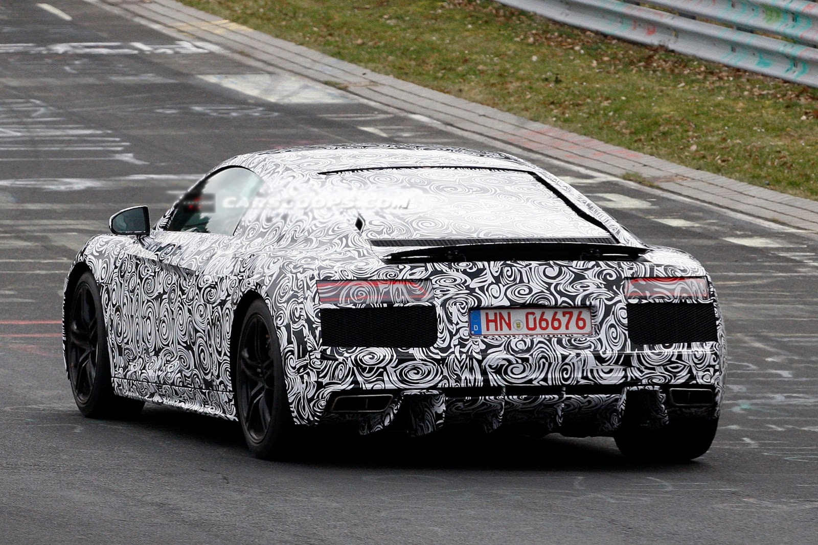 | Ảnh chạy thử Audi R8 mới tại trường đua Nurburgring. Ảnh: Carscoops. |