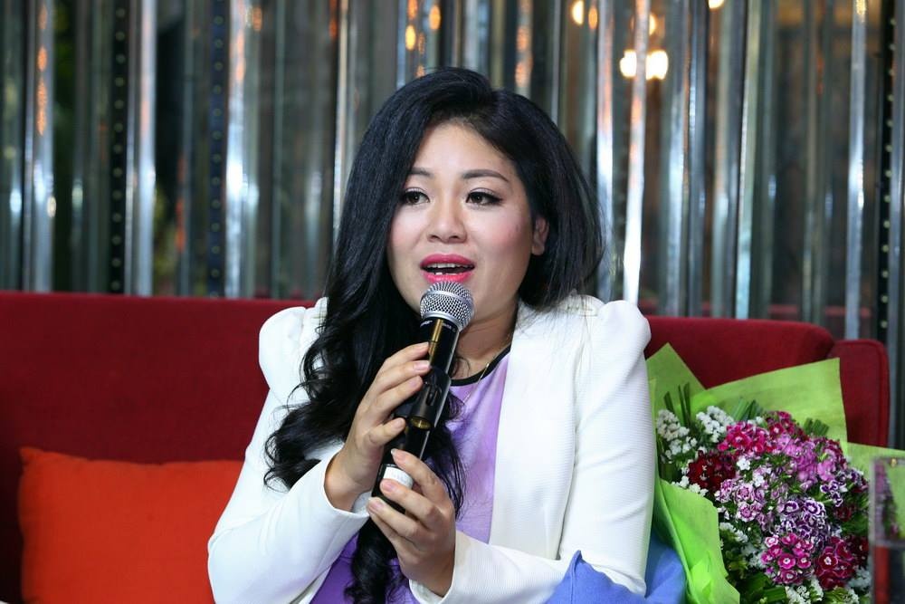 | Nữ ca sĩ Anh Thơ trong buổi ra mắt truyền thông live show Tình xa khơi 2 chiều 23/2 tại Hà Nội. |